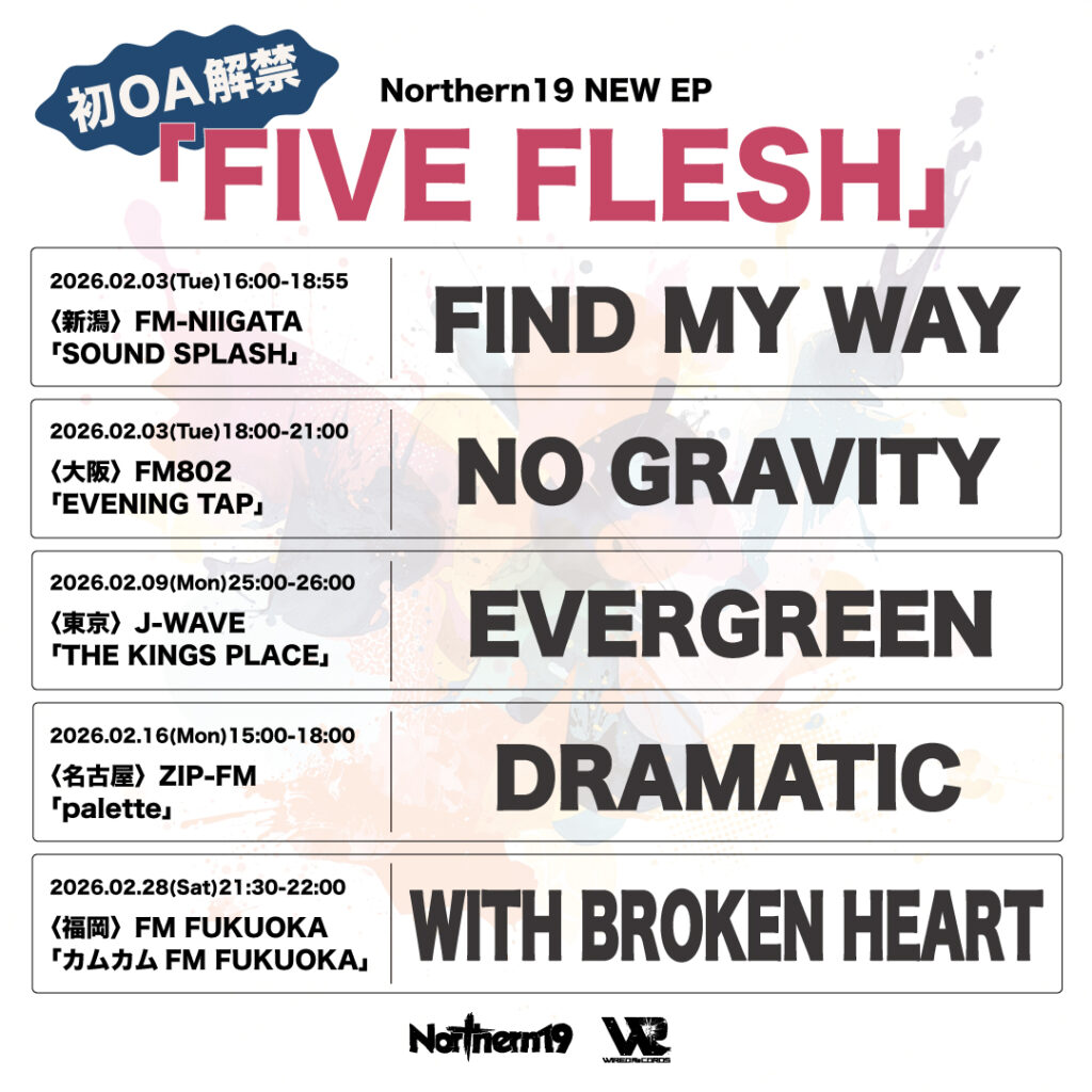 Northern19 FIVE FLESH 収録楽曲 初OA情報up